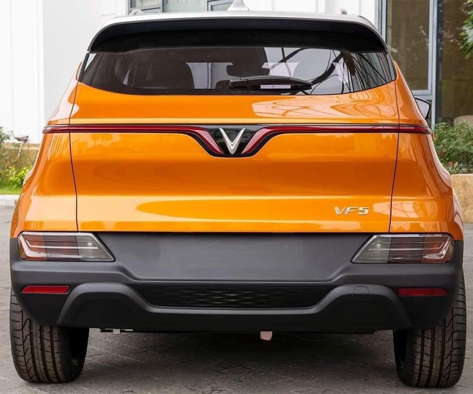 Phía đuôi xe được thiết kế đơn giản nhưng không kém phần ấn tượng với dải đèn nhận diện thương hiệu cùng cụm đèn xi nhan, đèn lùi và đèn sau màu đỏ được đặt thấp phía dưới. Phần cánh gió đuôi xe và ăng ten vây cá mập được sơn cùng màu với nóc xe. Cản sau được thiết kế hầm hố, càng làm tăng thêm vẻ ngoài mạnh mẽ, khỏe khoắn cho VF 5 .